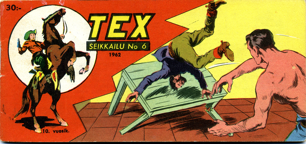 Vie hiiri kuvan päälle ja näet sen suurempana. Tex 6/1962 Julkaisuvuosi: 1962Kuntoluokitus: Good +10. vuosikerta Takakannessa lievä taite, laikkuja ja osoitetarra. Tähti-Sarjat Hinta5,00 € Facebook LikeGoogle Plus OneTweet Widget Saatat olla kiinnostunut myös näistä: